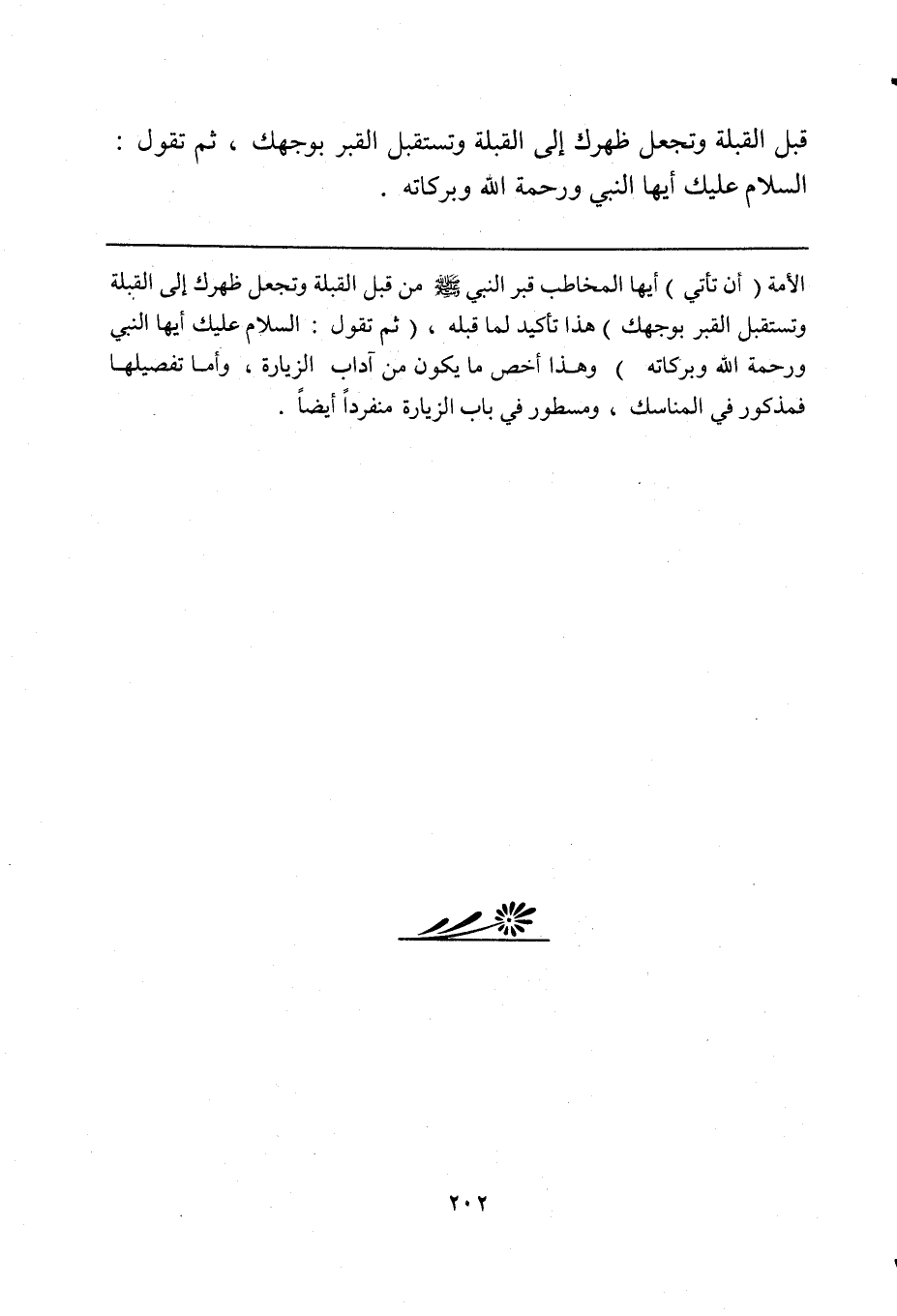 الأمة (أن تأتي) أيها المخاطب قبر النبي صلى الله عليه وسلم من قبل القبلة وتجعل ظهرك إلى القبلة وتستقبل القبر بوجهك) هذا تأكيد لما قبله، (ثم تقول: السلام عليك أيها النبي ورحمة الله وبركاته) وهذا أخص ما يكون من آداب الزيارة، وأما تفصيلها فمذكور في المناسك، ومسطور في باب الزيارة منفرداً أيضاً.