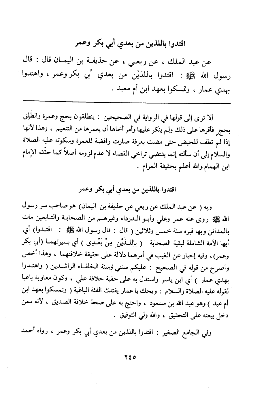 - اقتدوا باللذين من بعدي أبي بكر وعمر