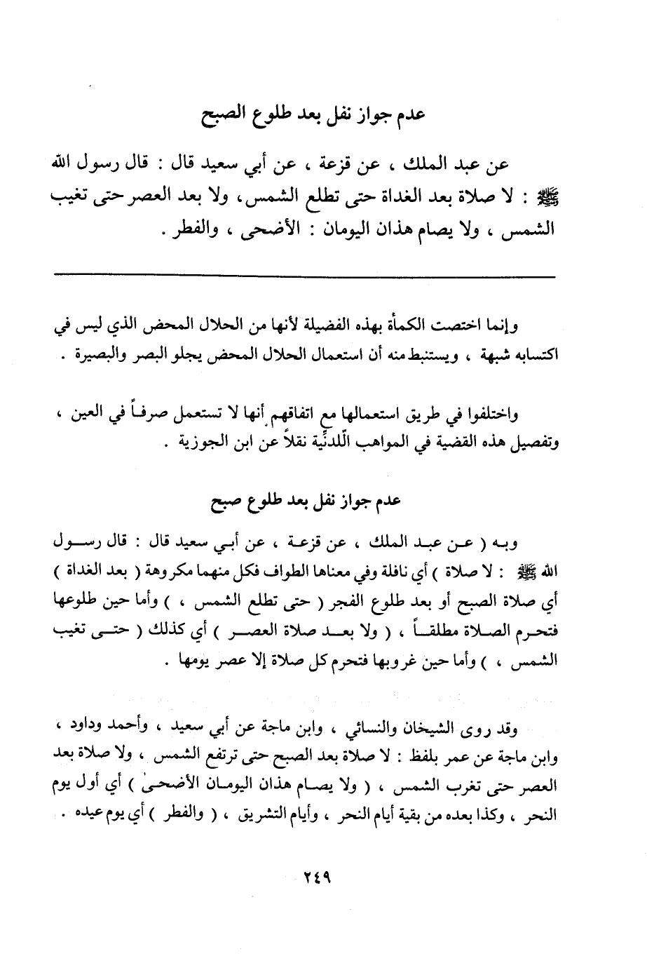 - عدم جواز نفل بعد طلوع صبح