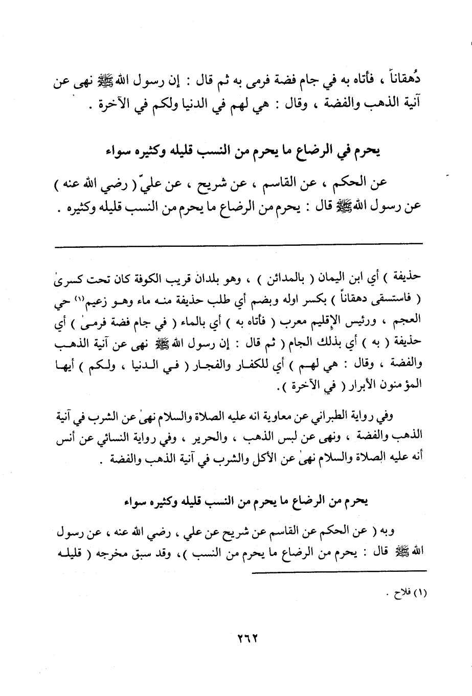 وبه (عن الحكم عن القاسم عن شريح عن علي، رضي الله عنه، عن رسول الله صلى الله عليه وسلم قال: يحرم من الرضاع ما يحرم من النسب)، وقد سبق مخرجه (قليله