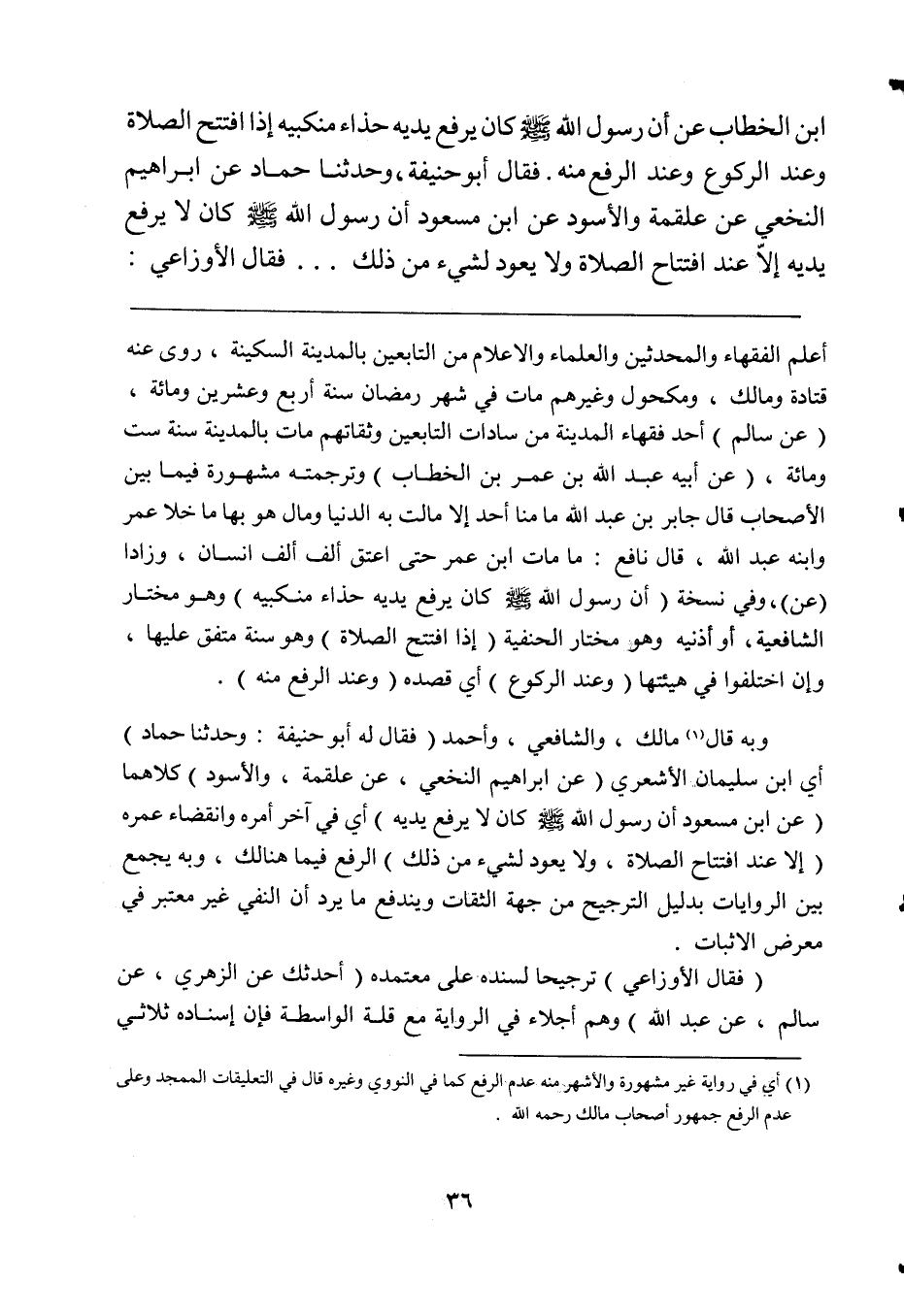 أعلم الفقهاء والمحدثين والعلماء والأعلام من التابعين بالمدينة السكينة، روى عنه قتادة ومالك، ومكحول وغيرهم مات في شهر رمضان سنة أربع وعشرين ومائة (عن سالم) أحد فقهاء المدينة من سادات التابعين وثقاتهم مات بالمدينة سنة ست ومائة، (عن أبيه عبد الله بن عمر بن الخطاب) وترجمته مشهورة فيما بين الأصحاب قال جابر بن عبد الله ما منا أحد إلا مالت به الدنيا ومال هو بها ما خلا عمر وابنه عبد الله، قال نافع: ما مات ابن عمر حتى أعتق ألف ألف إنسان، وزادا (عن)، وفي نسخة (أن رسول الله صلى الله عليه وسلم كان يرفع يديه حذاء منكبيه) وهو مختار الشافعية، أو أذنيه وهو مختار الحنفية (إذا افتتح الصلاة) وهو سنة متفق عليها، وإن اختلفوا في هيئتها (وعند الركوع) أي قصده (وعند الرفع منه).