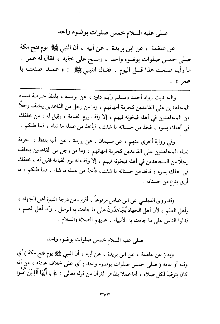 - صلى عليه السلام خمس صلوات بوضوء واحد