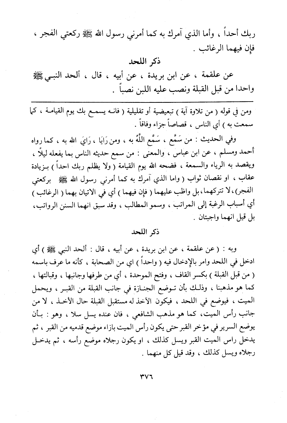 وفي الحديث: من سَمَّع، سَمَّع الله به، ومن رَايَا، رَايَ الله به، كما رواه أحمد ومسلم، عن ابن عباس، والمعنى: من سمع حديثه الناس بما يفعله ليلاً ويقصد به الرياء والسمعة، فضحه الله يوم القيامة (ولا يظلم ربك أحداً) بزيادة عقاب، أو نقصان ثواب (وأما الذي آمرك به كما أمرني رسول الله صلى الله عليه وسلم بركعتي الفجر)، لا تتركهما، بل واظب عليهما (فإن فيهما) أي في الإتيان بهما (الرغائب) أي أسباب الرغبة إلى المراتب، وسمو المطالب، وقد سبق أنهما السنن الرواتب، بل قيل إنهما واجبتان.