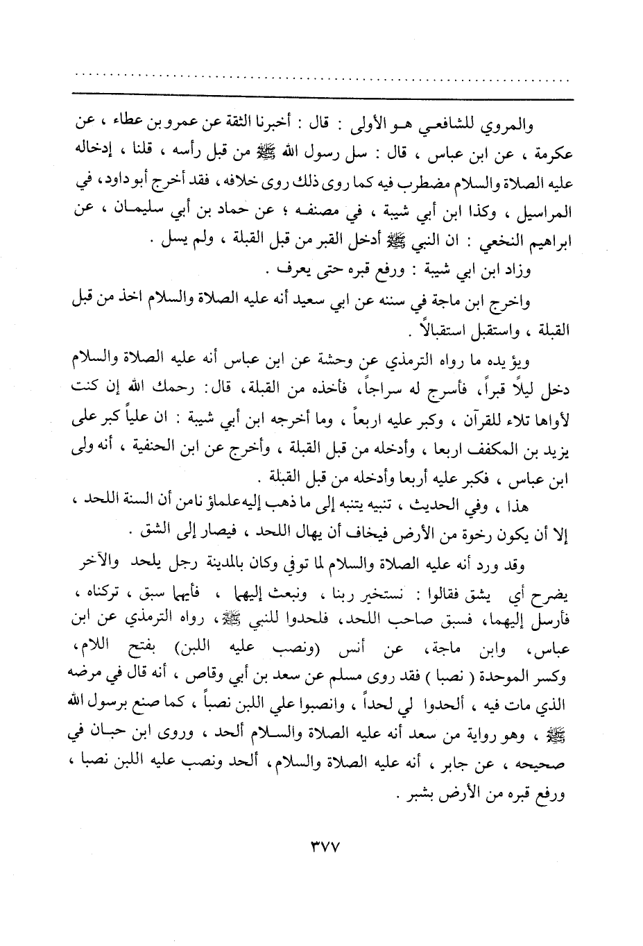 والمروي للشافعي هو الأولى: قال: أخبرنا الثقة عن عمرو بن عطاء، عن عكرمة، عن ابن عباس، قال: سل رسول الله صلى الله عليه وسلم من قبل رأسه، قلنا، إدخاله عليه الصلاة والسلام مضطرب فيه كما روى ذلك روى خلافه، فقد أخرج أبو داود، في المراسيل، وكذا ابن أبي شيبة، في مصنفه، عن حماد بن أبي سليمان، عن إبراهيم النخعي: أن النبي صلى الله عليه وسلم أدخل القبر من قبل القبلة، ولم يسل.