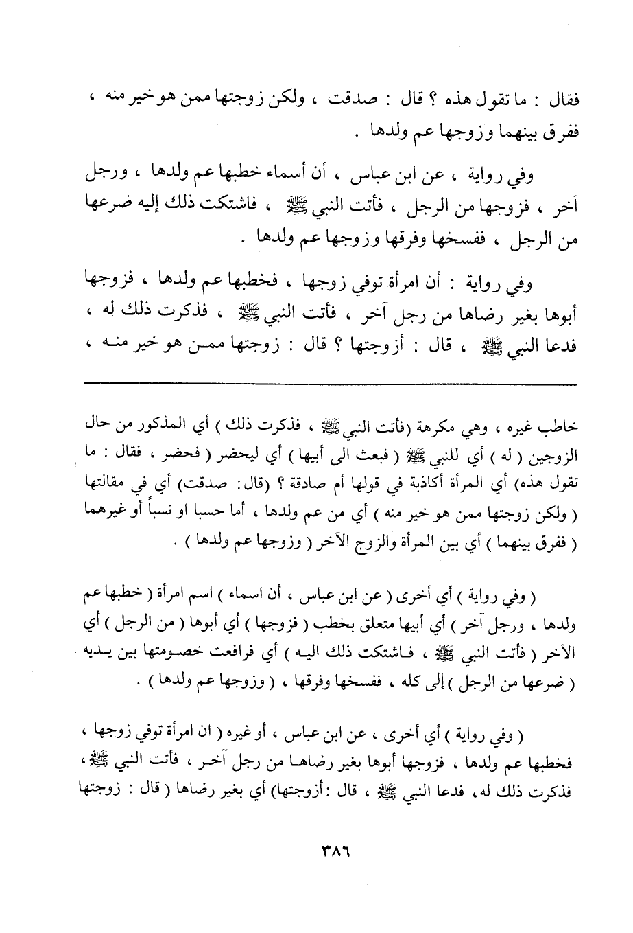 خاطب غيره، وهي مكرهة (فأتت النبي صلى الله عليه وسلم، فذكرت ذلك) أي المذكور من حال الزوجين (له) أي للنبي صلى الله عليه وسلم (فبعث إلى أبيها) أي ليحضر (فحضر، فقال: ما تقول هذه) أي المرأة أكاذبة في قولها أم صادقة؟ (قال: صدقت) أي في مقالتها (ولكن زوجتها ممن هو خير منه) أي من عم ولدها، إما حسباً أو نسباً أو غيرهما (ففرق بينهما) أي بين المرأة والزوج الآخر (وزوجها عم ولدها).