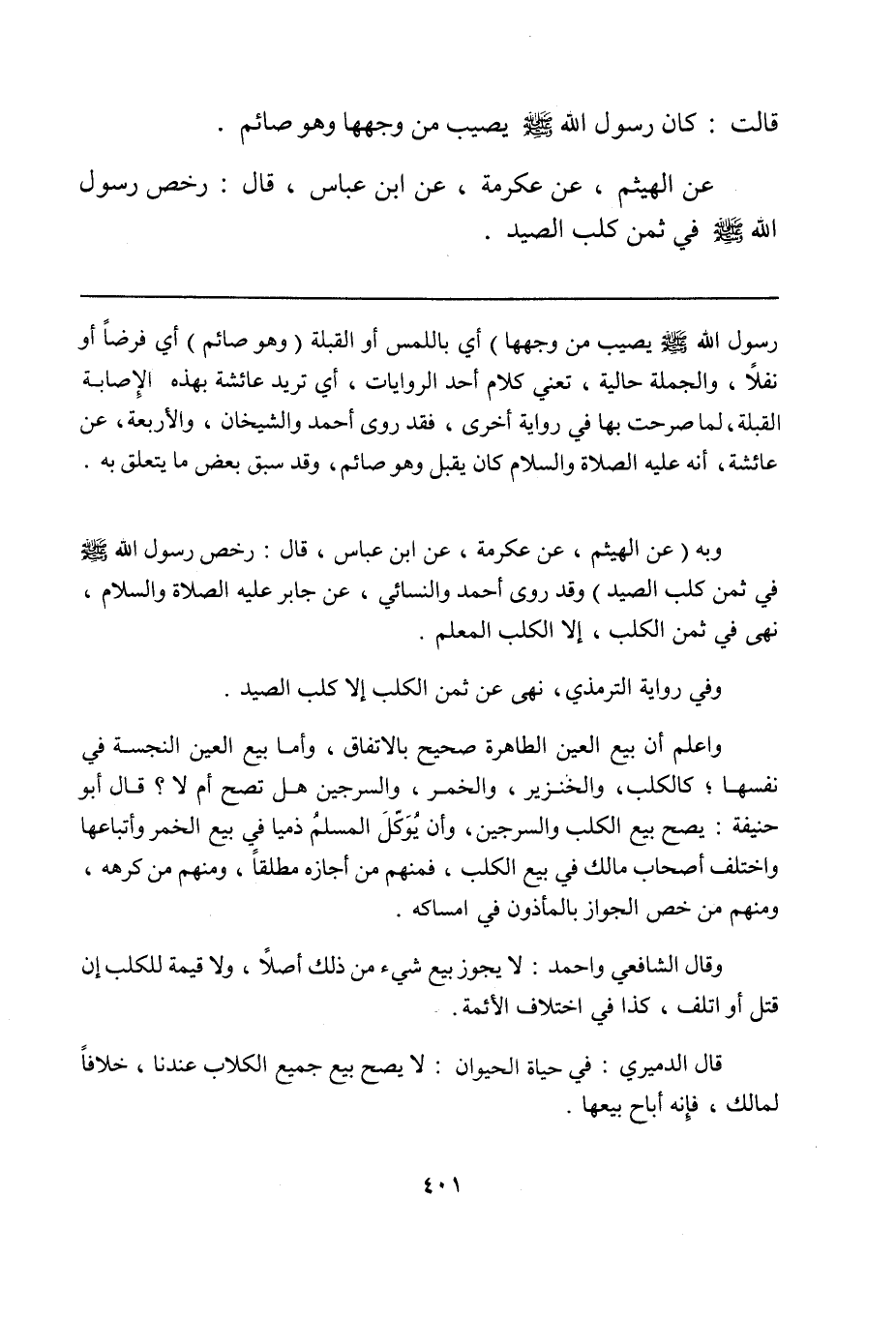وبه (عن الهيثم، عن عكرمة، عن ابن عباس، قال: رخص رسول الله صلى الله عليه وسلم في ثمن كلب الصيد) وقد روى أحمد والنسائي، عن جابر أنه عليه الصلاة والسلام، نهى في ثمن الكلب، إلا الكلب المعلم.