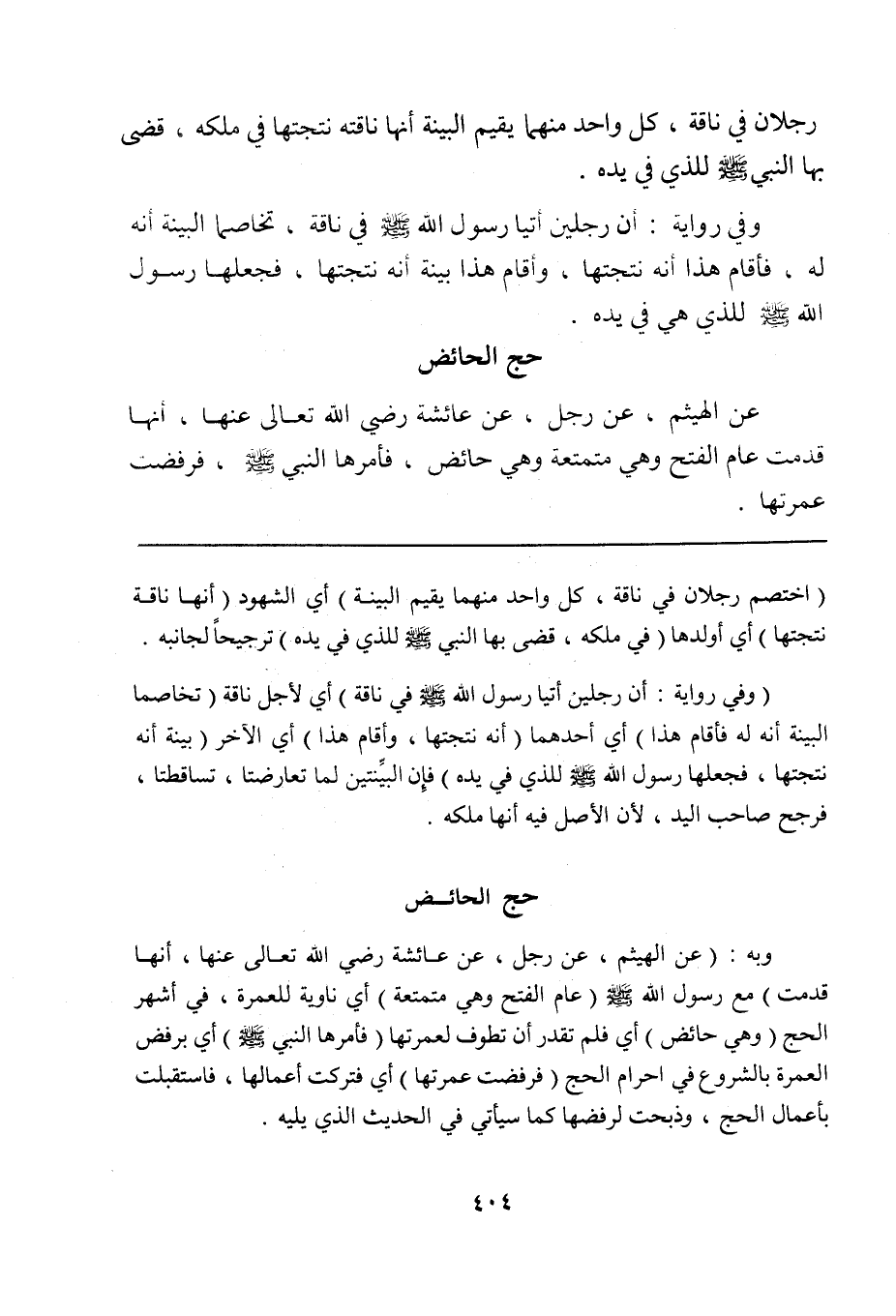 (وفي رواية: أن الرجلين أتيا رسول الله صلى الله عليه وسلم في ناقة) أي لأجل ناقة (تخاصما البينة أنه له فأقام هذا) أي أحدهما (أنه نتجتها، وأقام هذا) أي الآخر (بينة أنه نتجتها، فجعلها رسول الله صلى الله عليه وسلم للذي في يده) فإن البيِّنتين لما تعارضتا، تساقطتا، فرجح صاحب اليد، لأن الأصل فيه أنها ملكه.