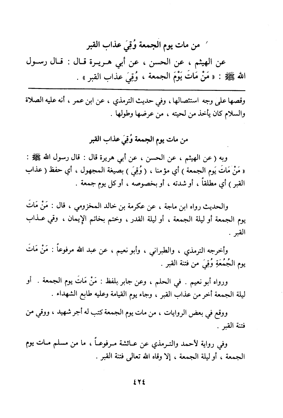 - من مات يوم الجمعة وُقِيَ عذاب القبر