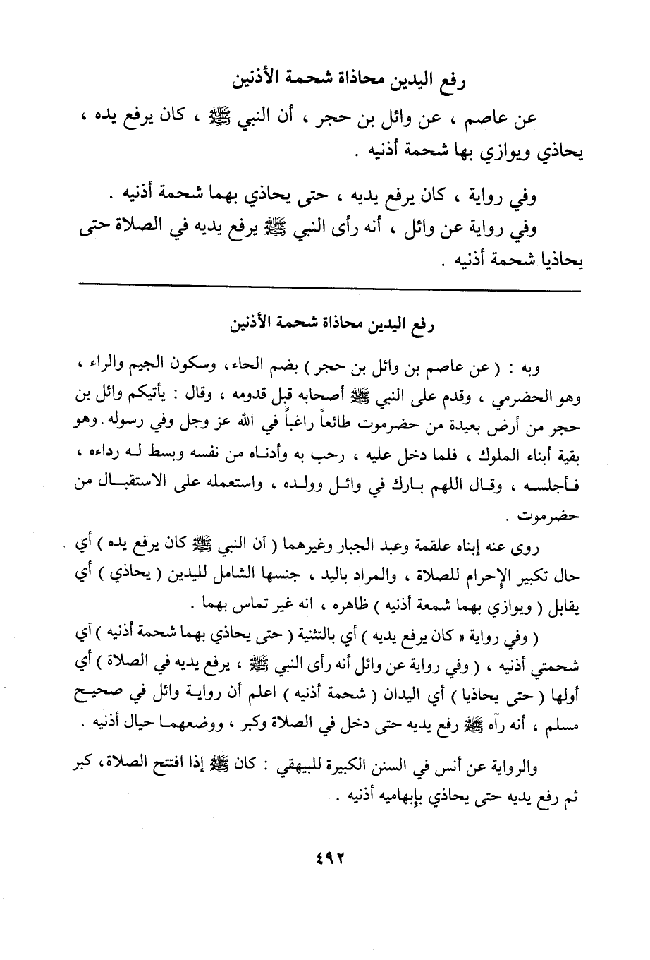 روى عنه ابناه علقمة وعبد الجبار وغيرهما (أن النبي صلى الله عليه وسلم كان يرفع يده) أي حال تكبير الإحرام للصلاة، والمراد باليد، جنسها الشامل لليدين (يحاذي) أي يقابل (ويوازي بهما شحمة أذنيه) ظاهره، أنه غير تماس بهما.