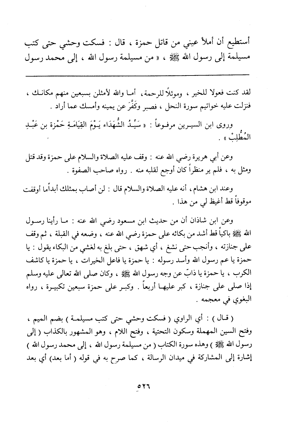 وروى ابن السيرين مرفوعاً: "سَيِّدُ الشُّهَدَاء يَوْمَ القِيَامَةِ حَمْزة بن عَبْدِ المُطَّلِبْ".