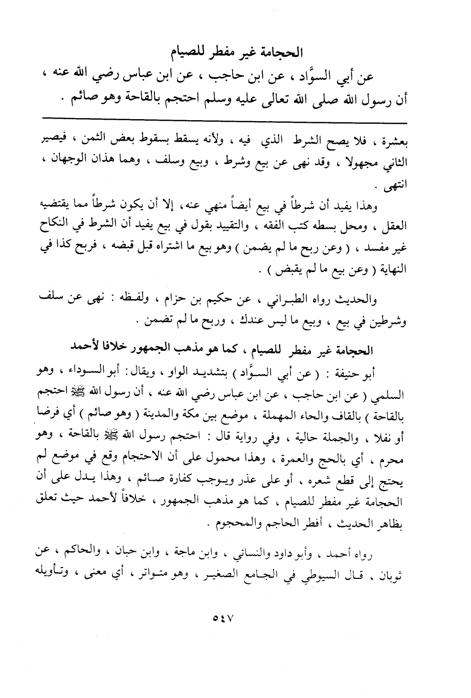 - الحجامة غير مفطر للصيام، كما هو مذهب الجمهور خلافاً لأحمد