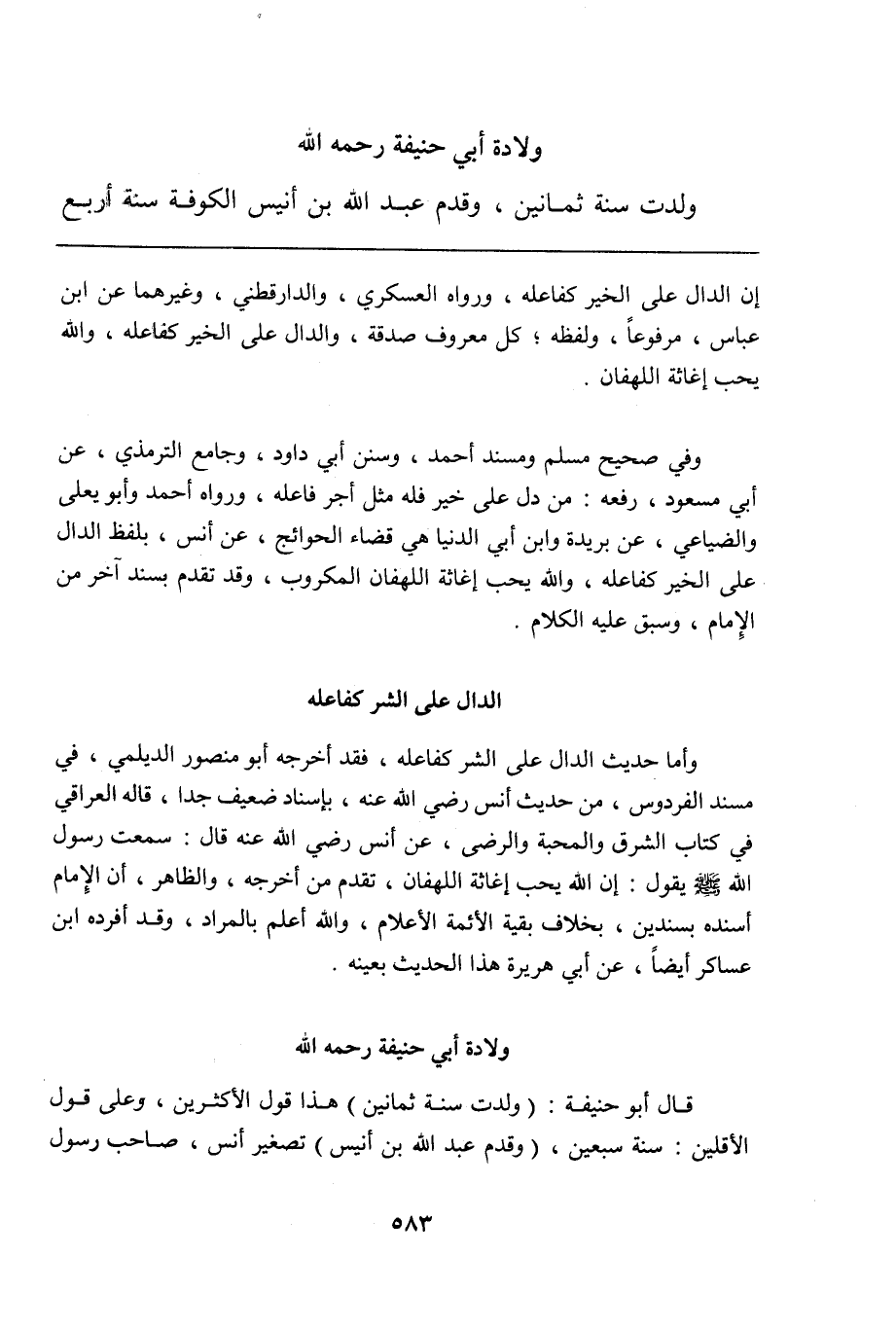 وفي صحيح مسلم ومسند أحمد، وسنن أبي داود، وجامع الترمذي، عن أبي مسعود، رفعه: من دل على خير فله مثل أجر فاعله، ورواه أحمد وأبو يعلى والضياعي، عن بريدة وابن أبي الدنيا هي قضاء الحوائج، عن أنس، بلفظ الدال على الخير كفاعله، والله يحب إغاثة اللهفان المكروب، وقد تقدم بسند آخر من الإمام، وسبق عليه الكلام.