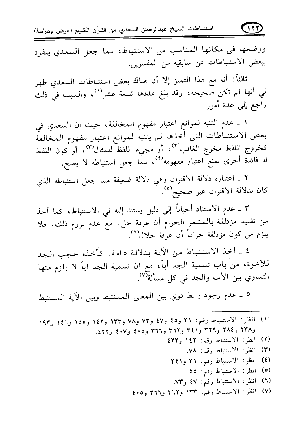 (¬٧) انظر: الاستنباط رقم: ١٣٣ و ٣٦٢ و ٣٦٦ و ٤٠٥.
