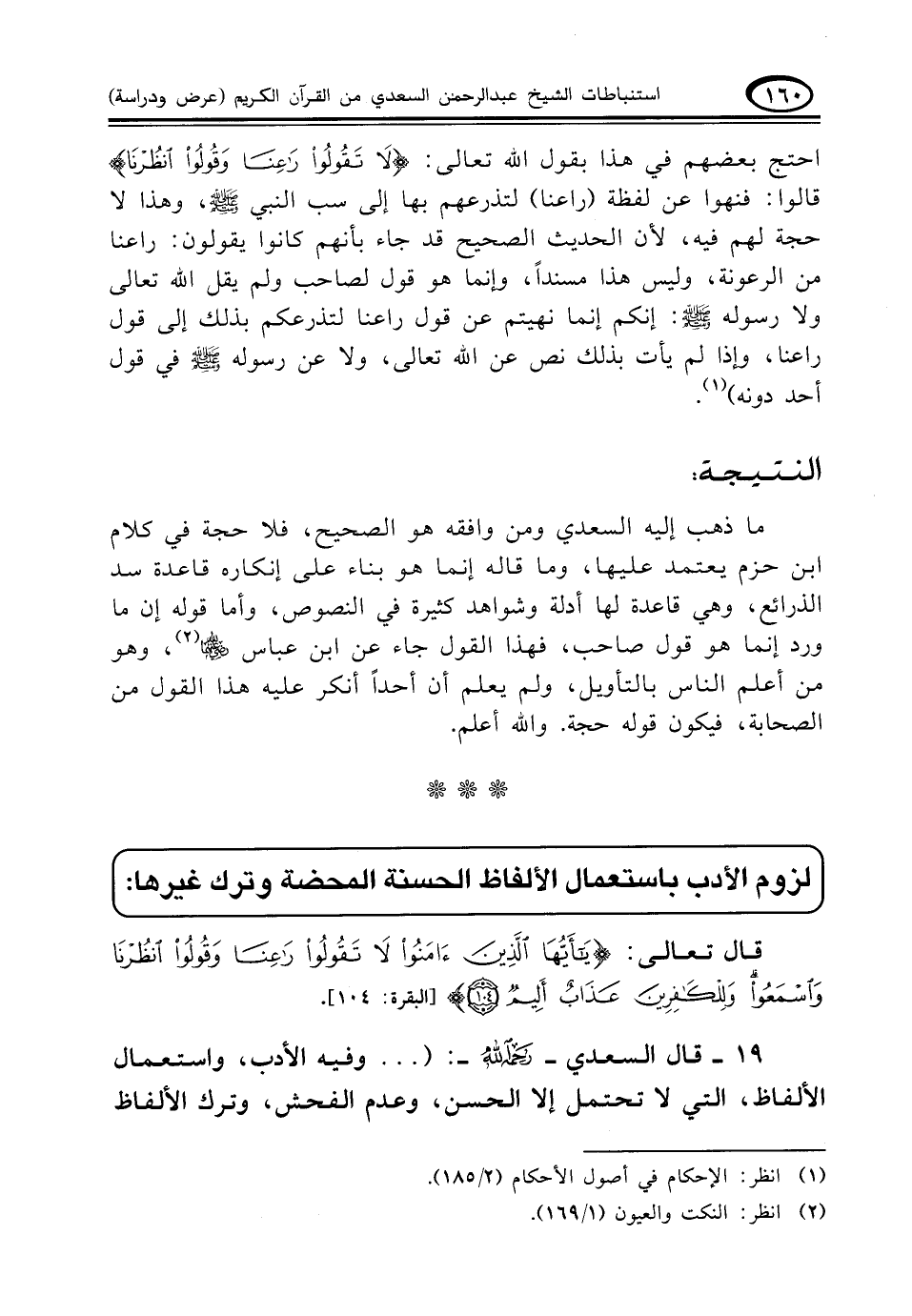 قال تعالى: {يَا أَيُّهَا الَّذِينَ آَمَنُوا لَا تَقُولُوا رَاعِنَا وَقُولُوا انْظُرْنَا وَاسْمَعُوا وَلِلْكَافِرِينَ عَذَابٌ أَلِيمٌ (١٠٤)} (البقرة: ١٠٤).