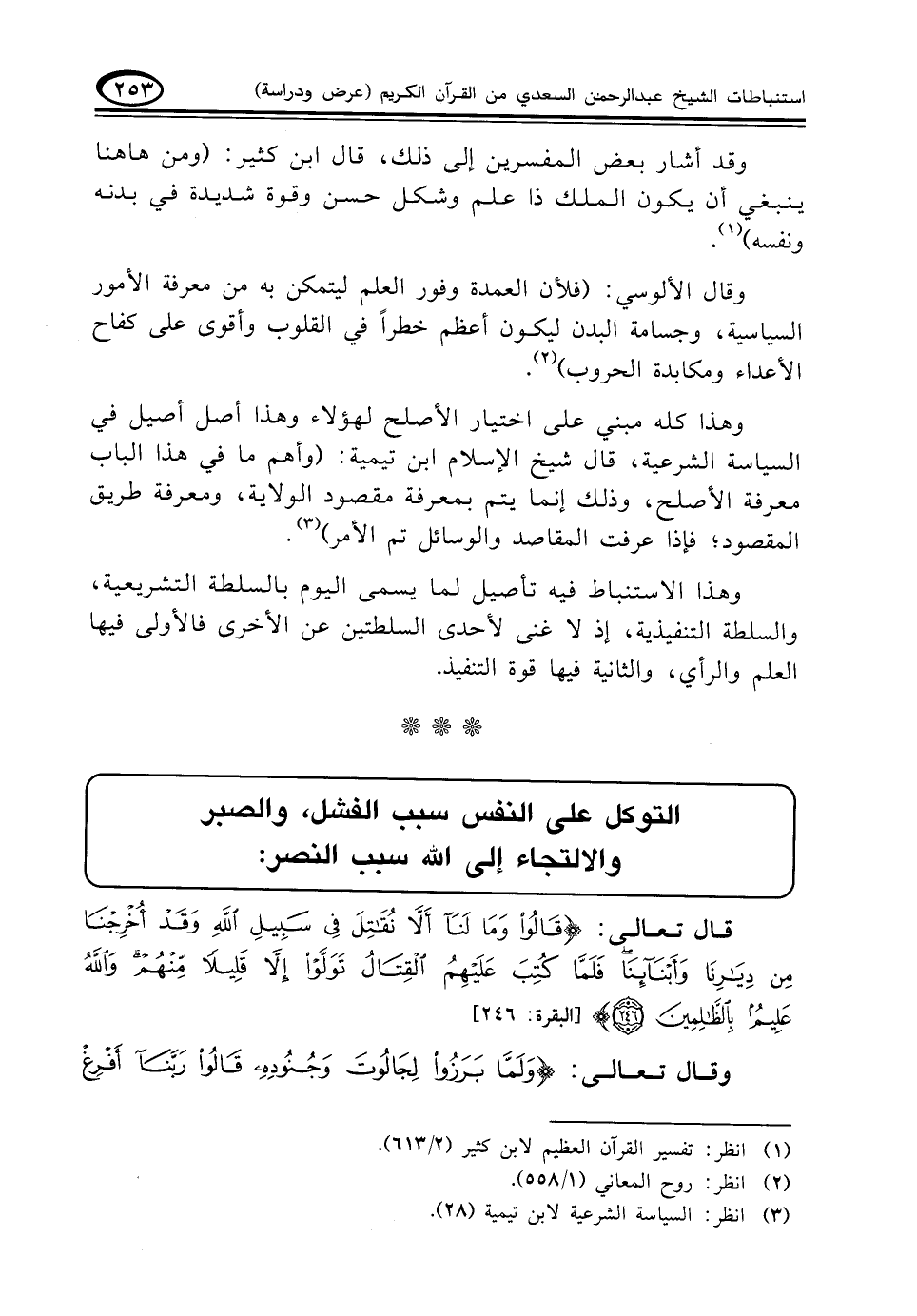 كتاب استنباطات الشيخ عبد الرحمن السعدي من القرآن الكريم عرض ودراسة