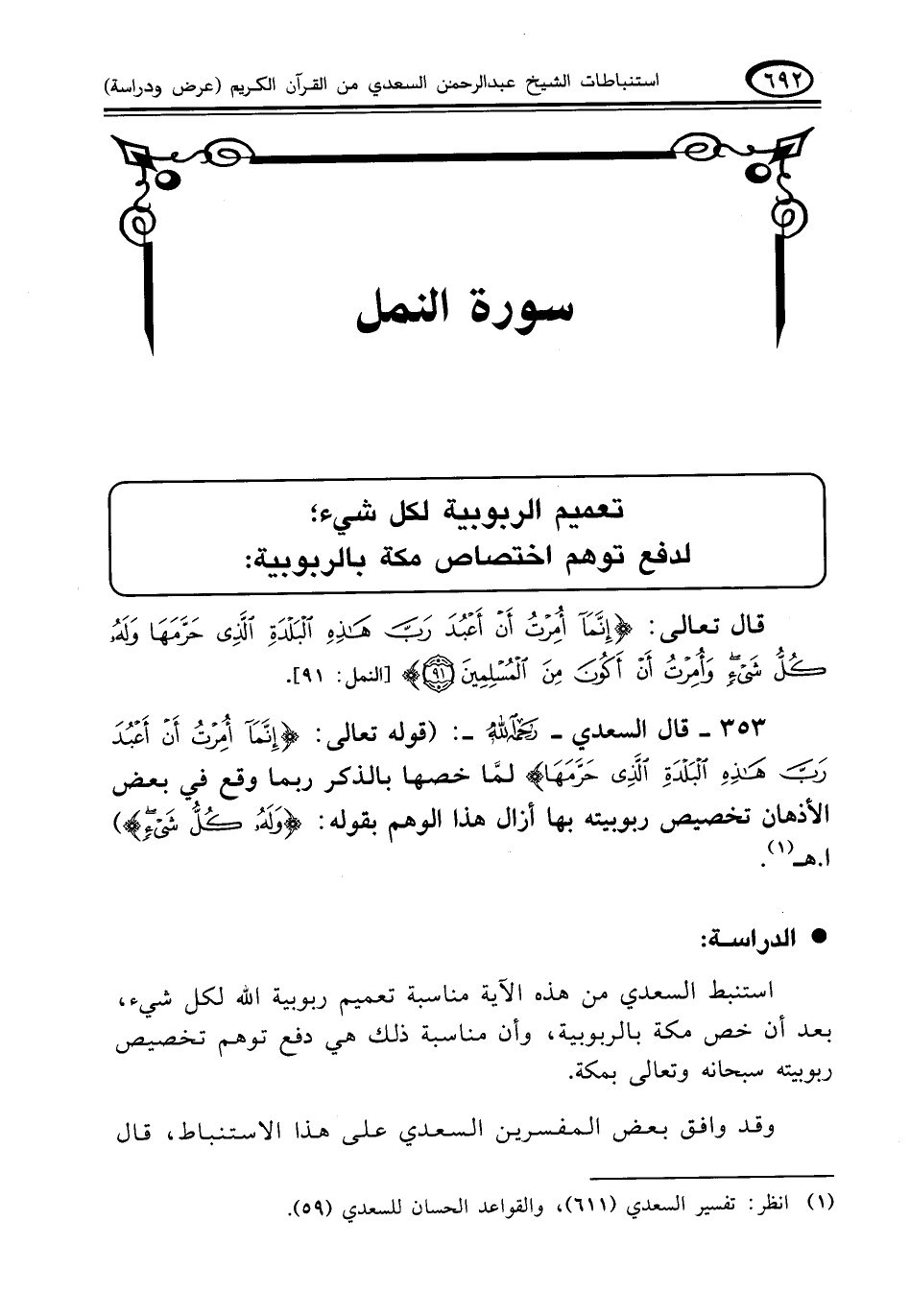 (¬١) انظر: تفسير السعدي (٦١١)، والقواعد الحسان للسعدي (٥٩).