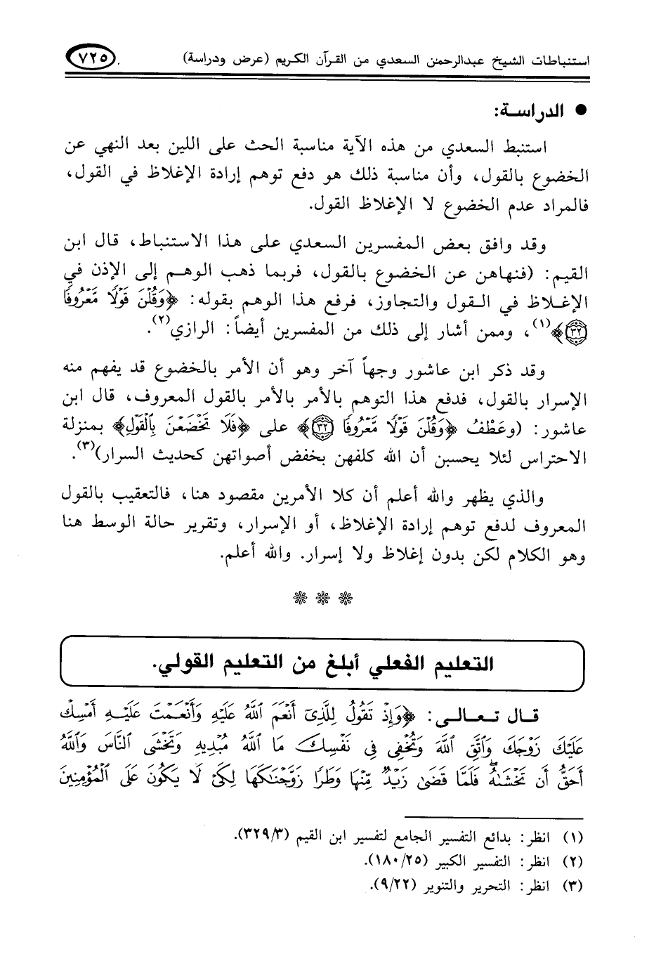 بقوله: {وَقُلْنَ قَوْلًا مَعْرُوفًا (٣٢)}) (¬١)، وممن أشار إلى ذلك من المفسرين أيضاً: الرازي (¬٢).