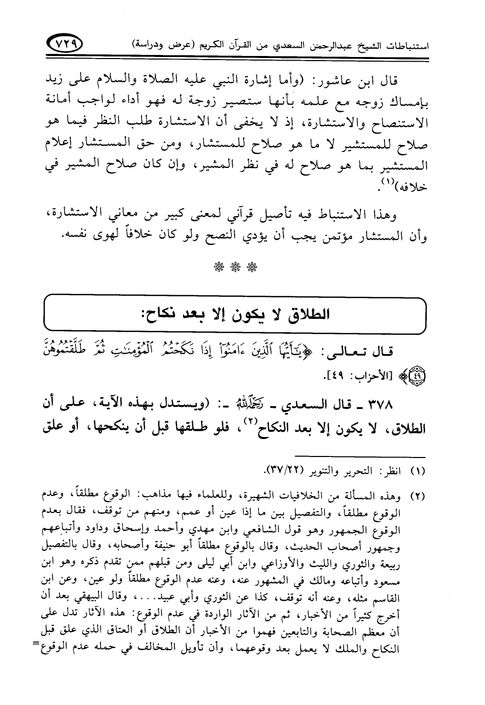 ٣٧٨ - قال السعدي - رحمه الله -: (ويستدل بهذه الآية، على أن الطلاق، لا يكون إلا بعد النكاح (¬٢)، فلو طلقها قبل أن ينكحها، أو علق