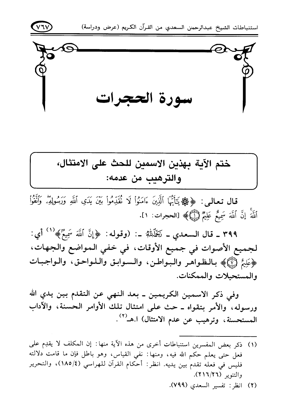 كتاب استنباطات الشيخ عبد الرحمن السعدي من القرآن الكريم عرض ودراسة