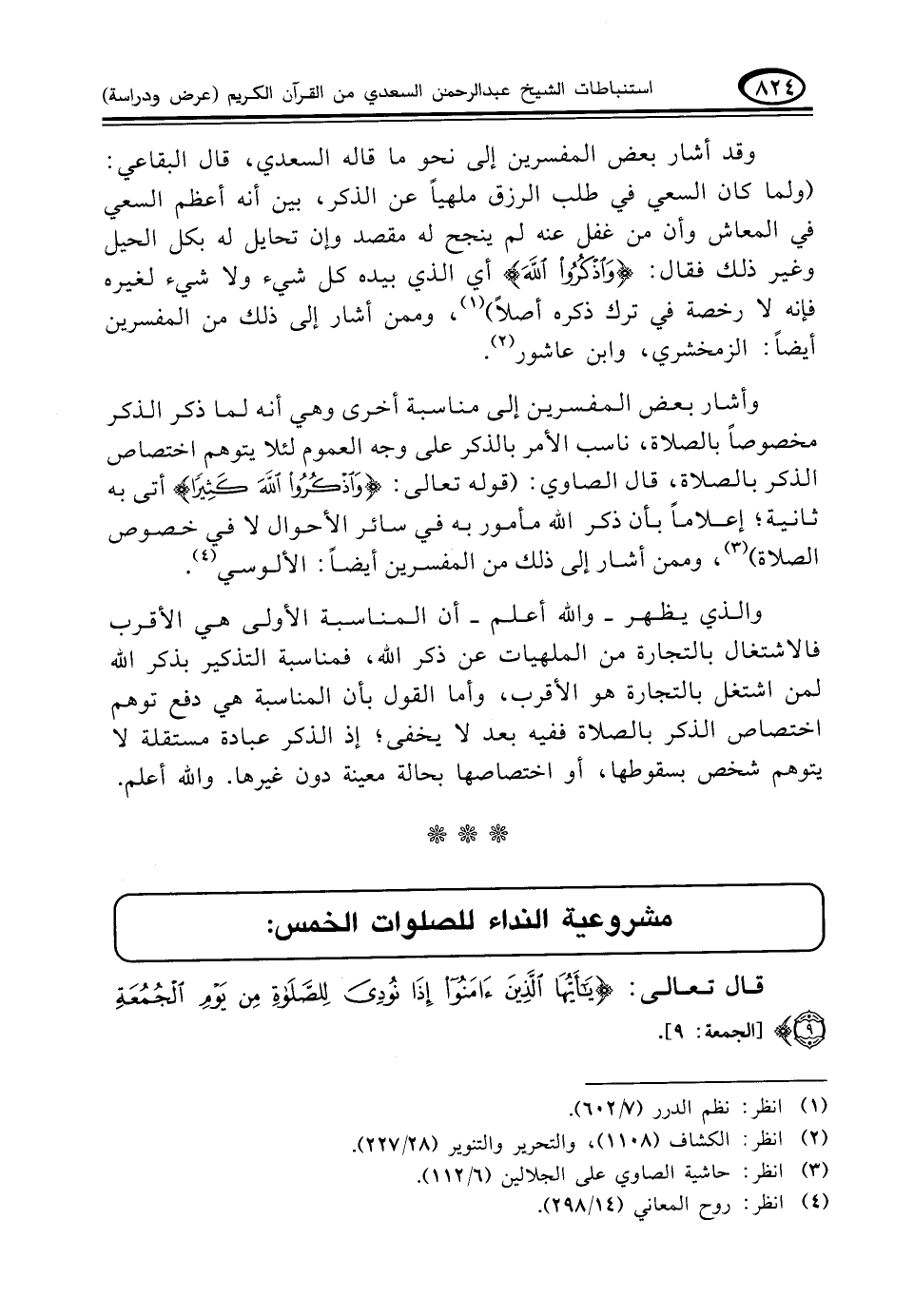 كتاب استنباطات الشيخ عبد الرحمن السعدي من القرآن الكريم عرض ودراسة