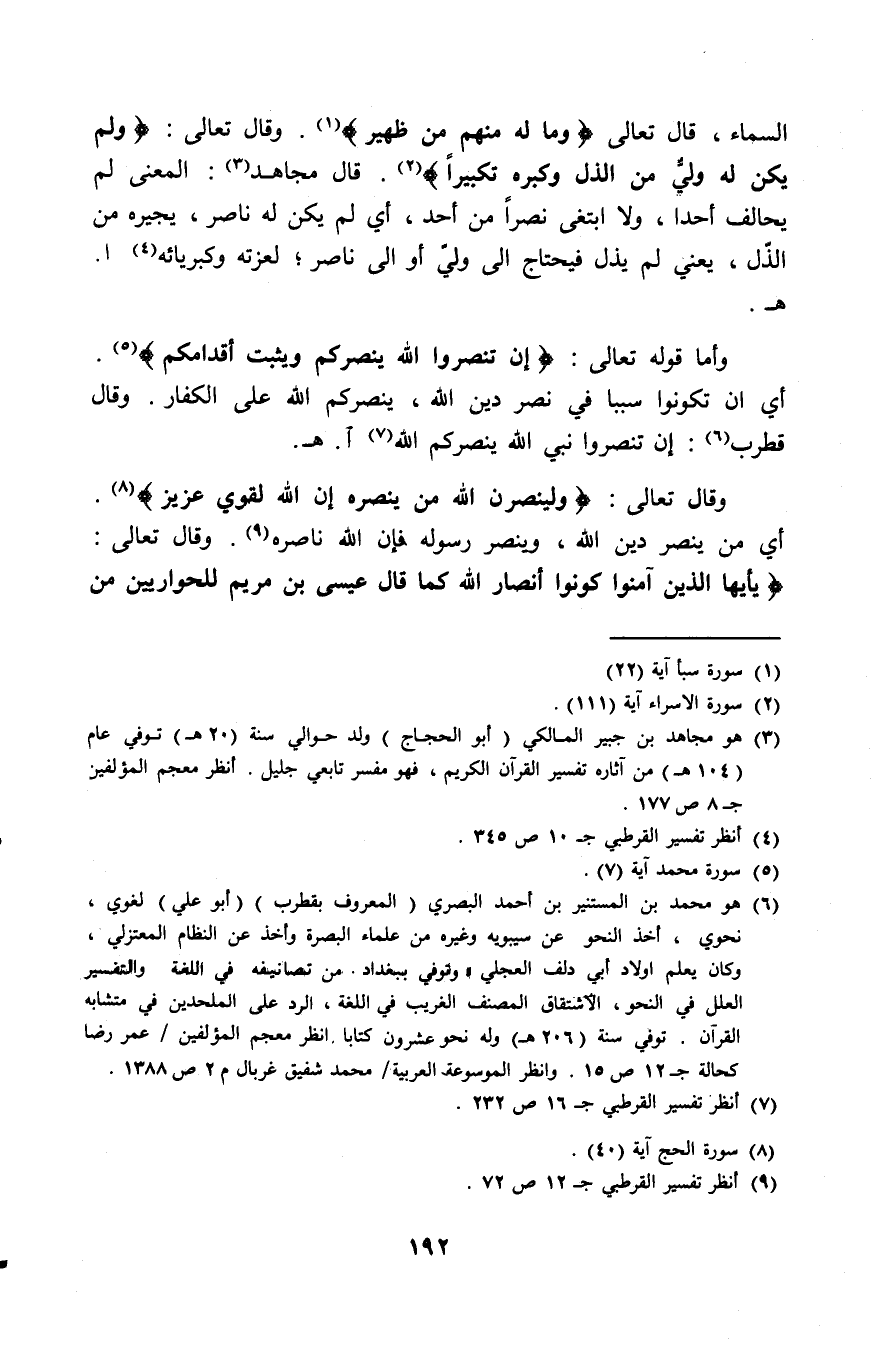 (¬1) هو مجاهد بن جبير المالكي أبو الحجاج ولد حوالي سنة 20 هـ توفي سنة 104هـ من آثاره تفسير القرآن الكريم، فهو مفسر تابعي جليل انظر معجم المؤلفين (8/ 177).