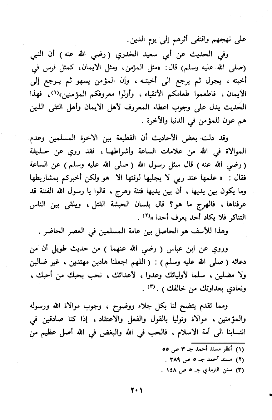 ومما تقدم يتضح لنا بكل جلاء ووضوح، وجوب موالاة الله ورسوله والمؤمنين، موالاة وتوليا بالقول والفعل والاعتقاد، إذا كنا صادقين في انتسابنا إلى أمة الإسلام، فالحب في الله والبغض في الله أصل عظيم من