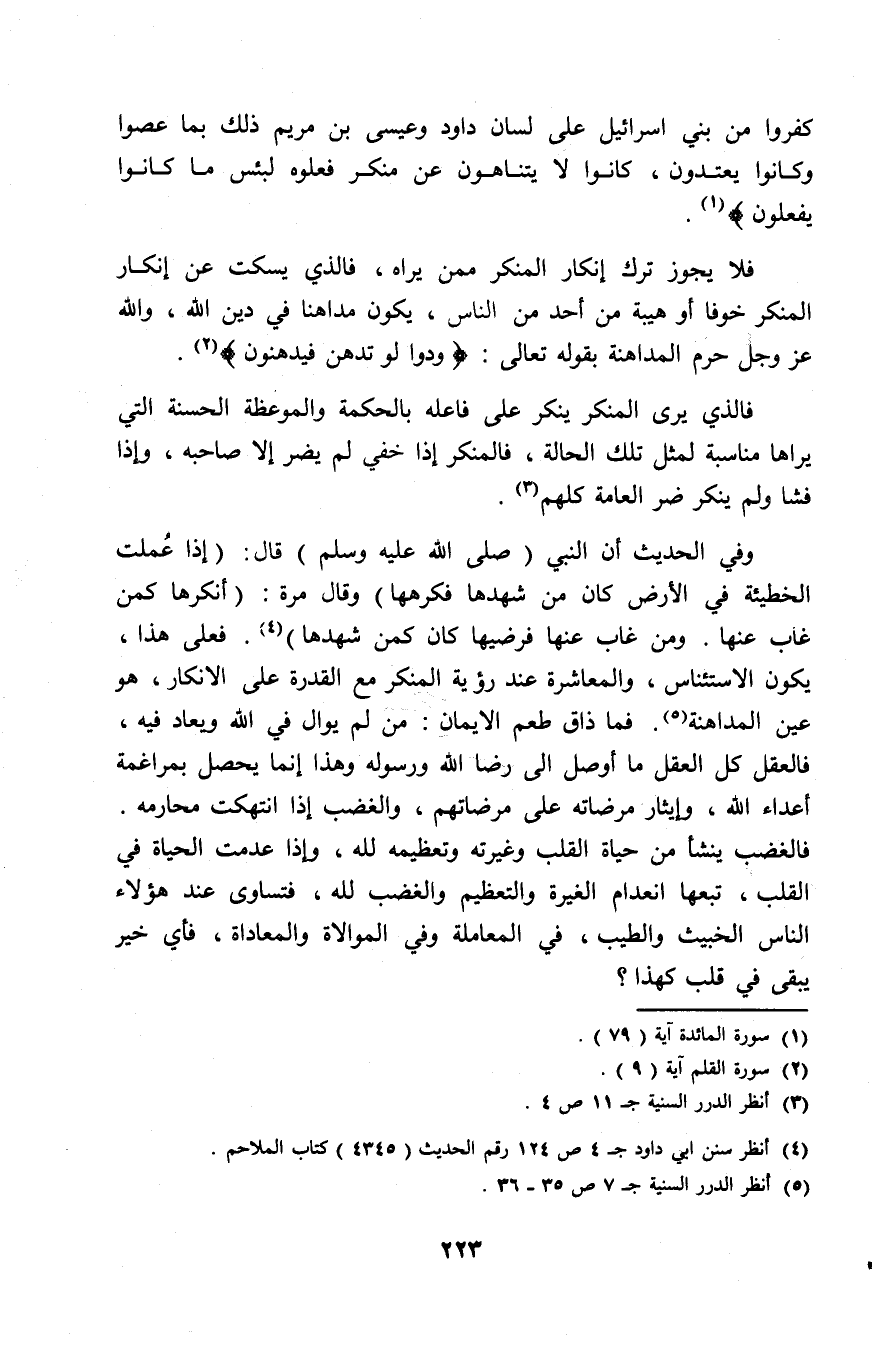 كَفَرُوا مِنْ بَنِي إِسْرَائِيلَ عَلَى لِسَانِ دَاوُدَ وَعِيسَى ابْنِ مَرْيَمَ ذَلِكَ بِمَا عَصَوا وَّكَانُوا يَعْتَدُونَ * كَانُوا لا يَتَنَاهَوْنَ عَن مُّنكَرٍ فَعَلُوهُ لَبِئْسَ مَا كَانُوا يَفعَلُونَ) [المائدة: 79].
