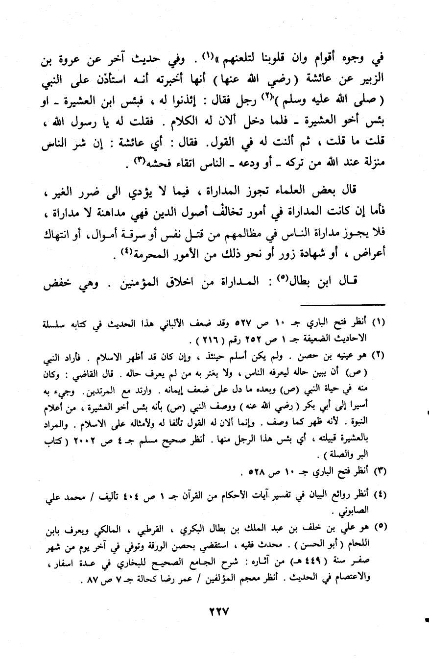 قال ابن بطال (¬5): المداراة من أخلاق المؤمنين، وهي خفض