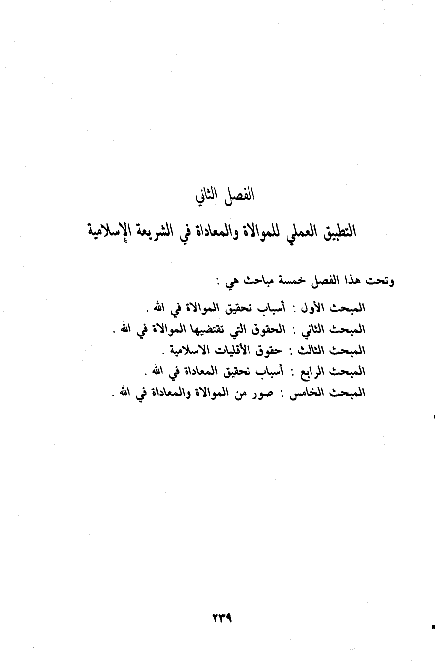 الفصل الثاني: التطبيق العملي للموالاة والمعادة في الشريعة الإسلامية