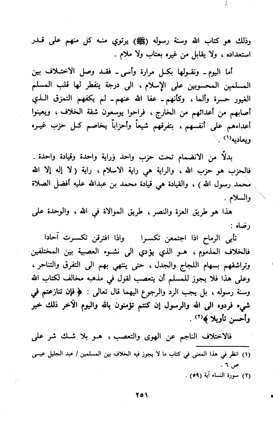 (¬1) انظر في هذا المعنى في كتاب ما لا يجوز فيه الخلاف بين المسلمين عبد الجليل عيسى (6).