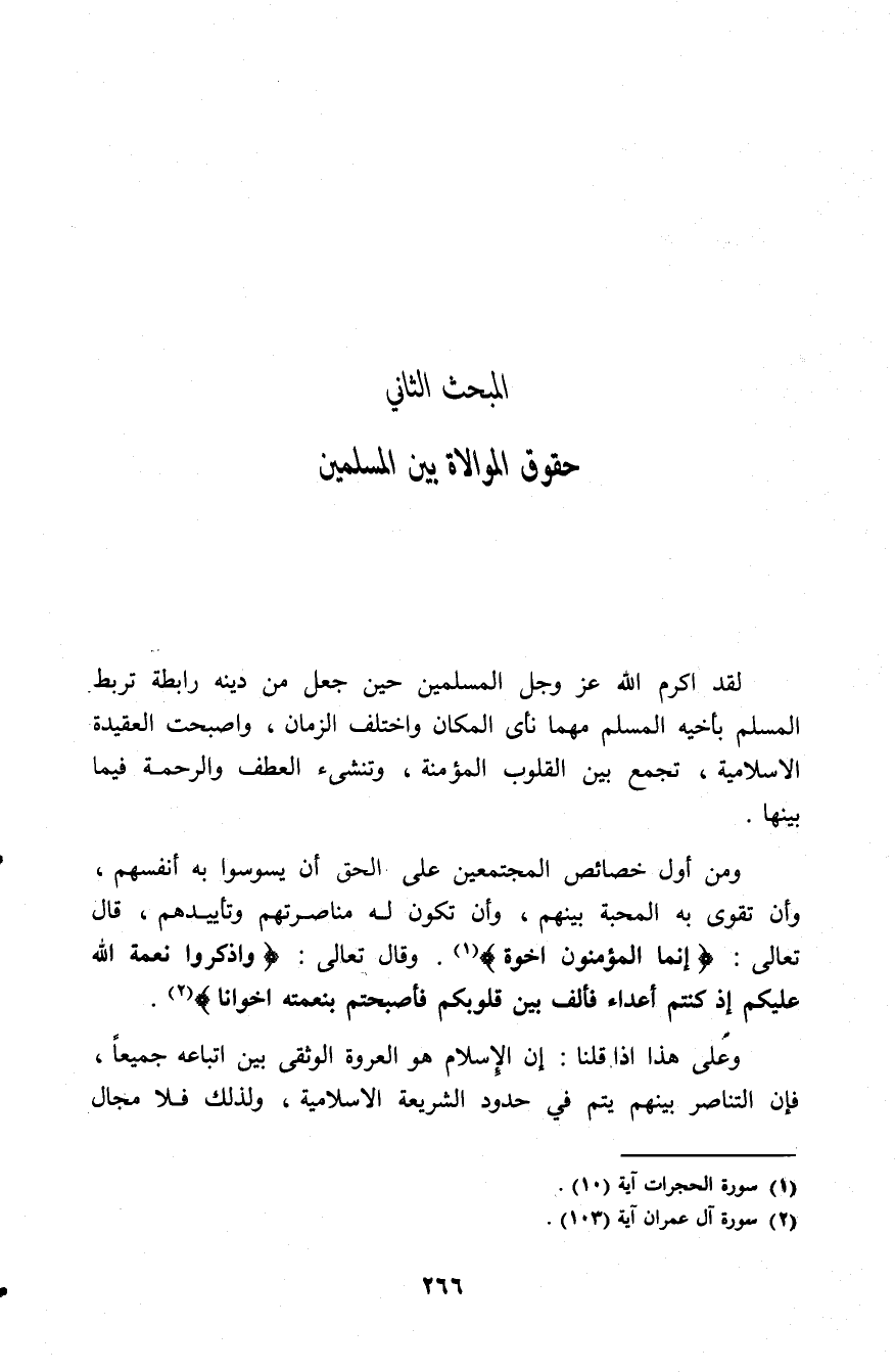 المبحث الثاني: حقوق الموالاة بين المسلمين