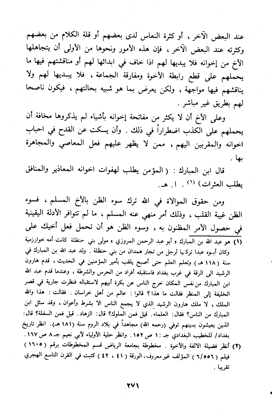 (¬2) انظر فضيلة الألفة والأخوة، مخطوطة بجامعة الرياض قسم المخطوطات (1605)، فيلم (556/ 6) المؤلف غير معروف الورقة (41، 42) كتبت في القرن التاسع الهجري تقريبًا.