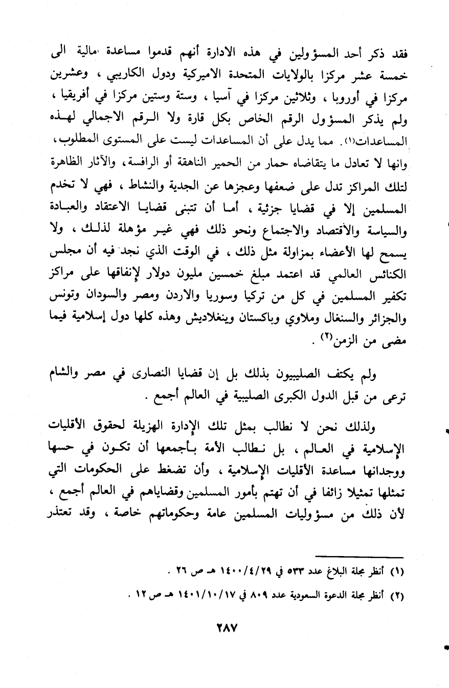 (¬1) انظر مجلة البلاغ عدد (533) في (29/ 4/ 1400) هـ (26).