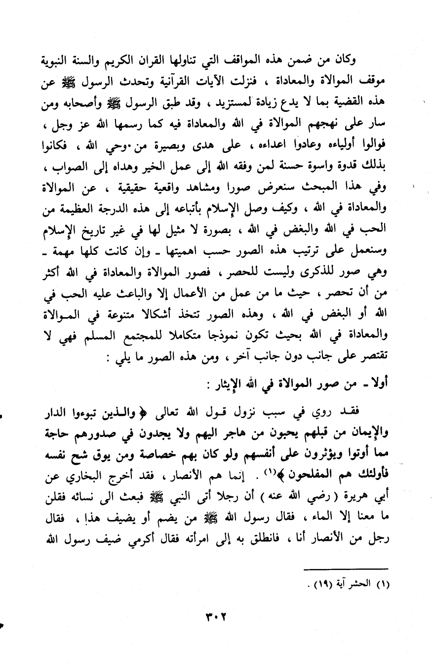 أولا: من صور الموالاة في الله الإيثار: