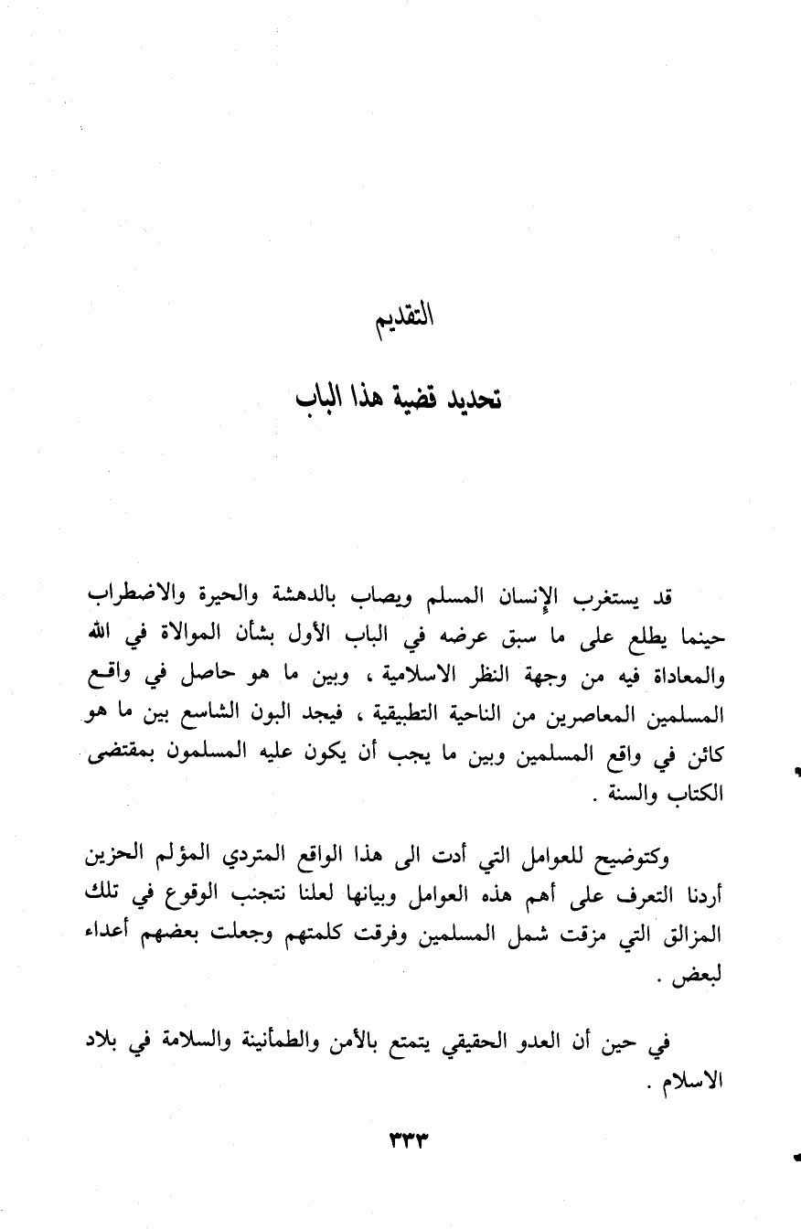 في حين أن العدو الحقيقي يتمتع بالأمن والطمأنينة والسلامة في بلاد الإسلام.