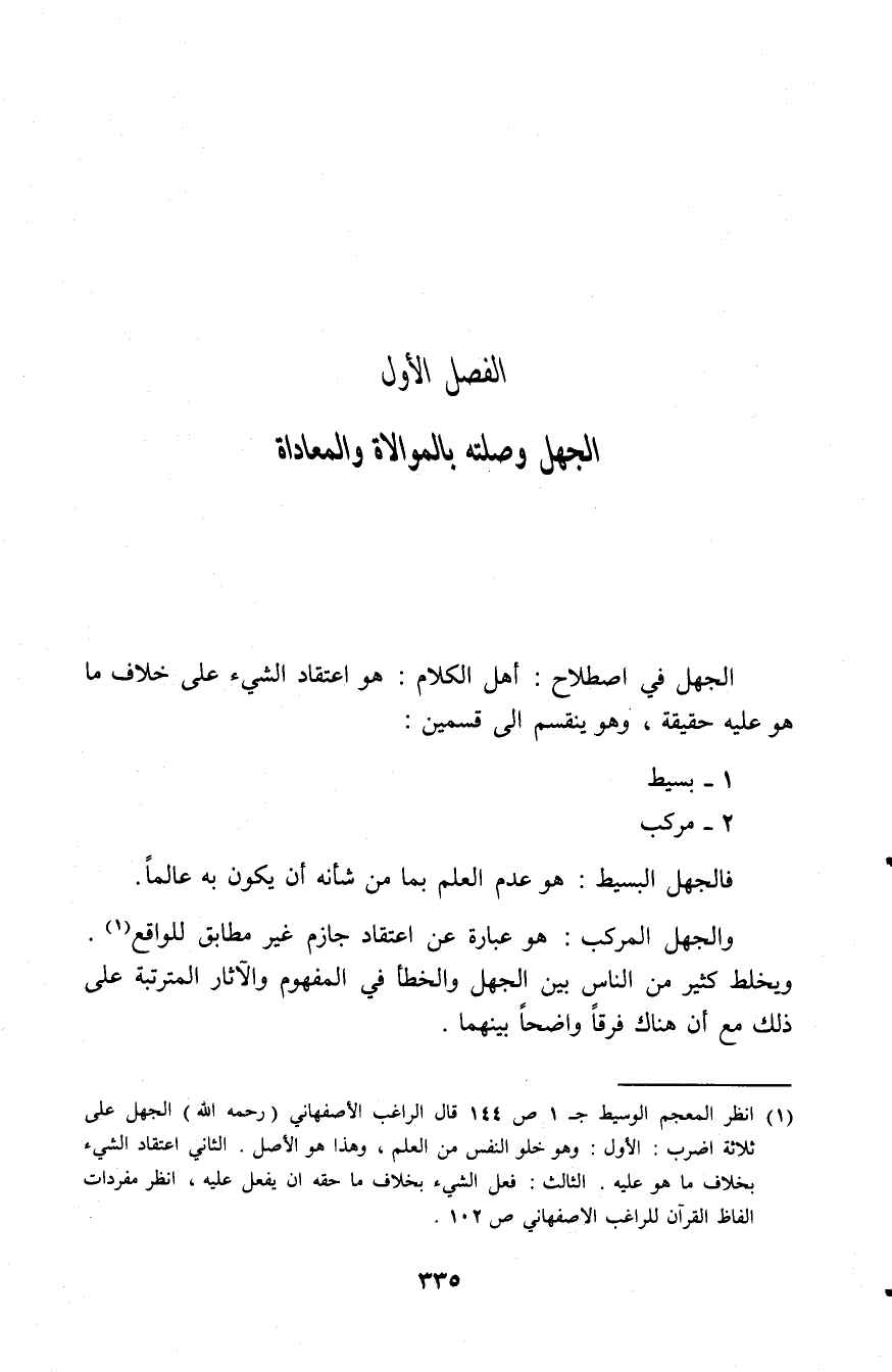 الفصل الأول: الجهل وصلته بالموالاة والمعاداة
