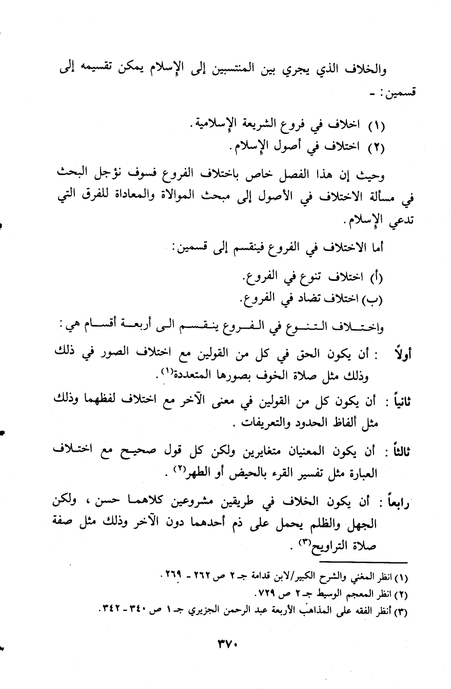 (1) اختلاف في فروع الشريعة الإسلامية.