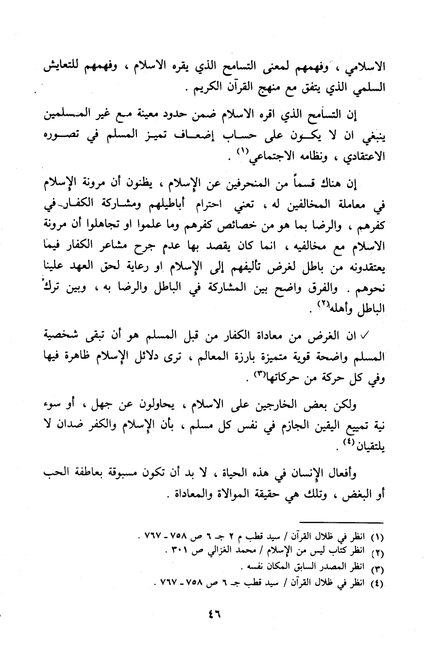 إن التسامح الذي أقره الإسلام ضمن حدود معينة مع غير المسلمين ينبغي ألا يكون على حساب إضعاف تميز المسلم في تصوره الاعتقادي ونظامه الاجتماعي (¬1).