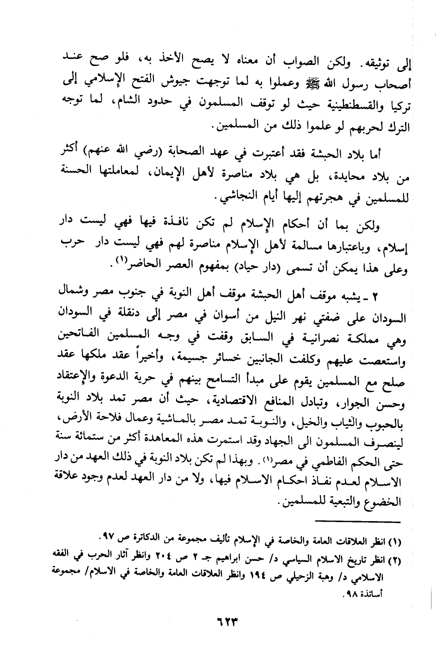 (¬2) انظر تاريخ الإسلام السياسي د/ حسن إبراهيم ج2 ص204. وانظر آثار الحرب في الفقه الإسلامي د/ وهبة الزحيلي ص914. وانظر العلاقات العامة والخاصة في الإسلام/ مجموعة أساتذة 98.
