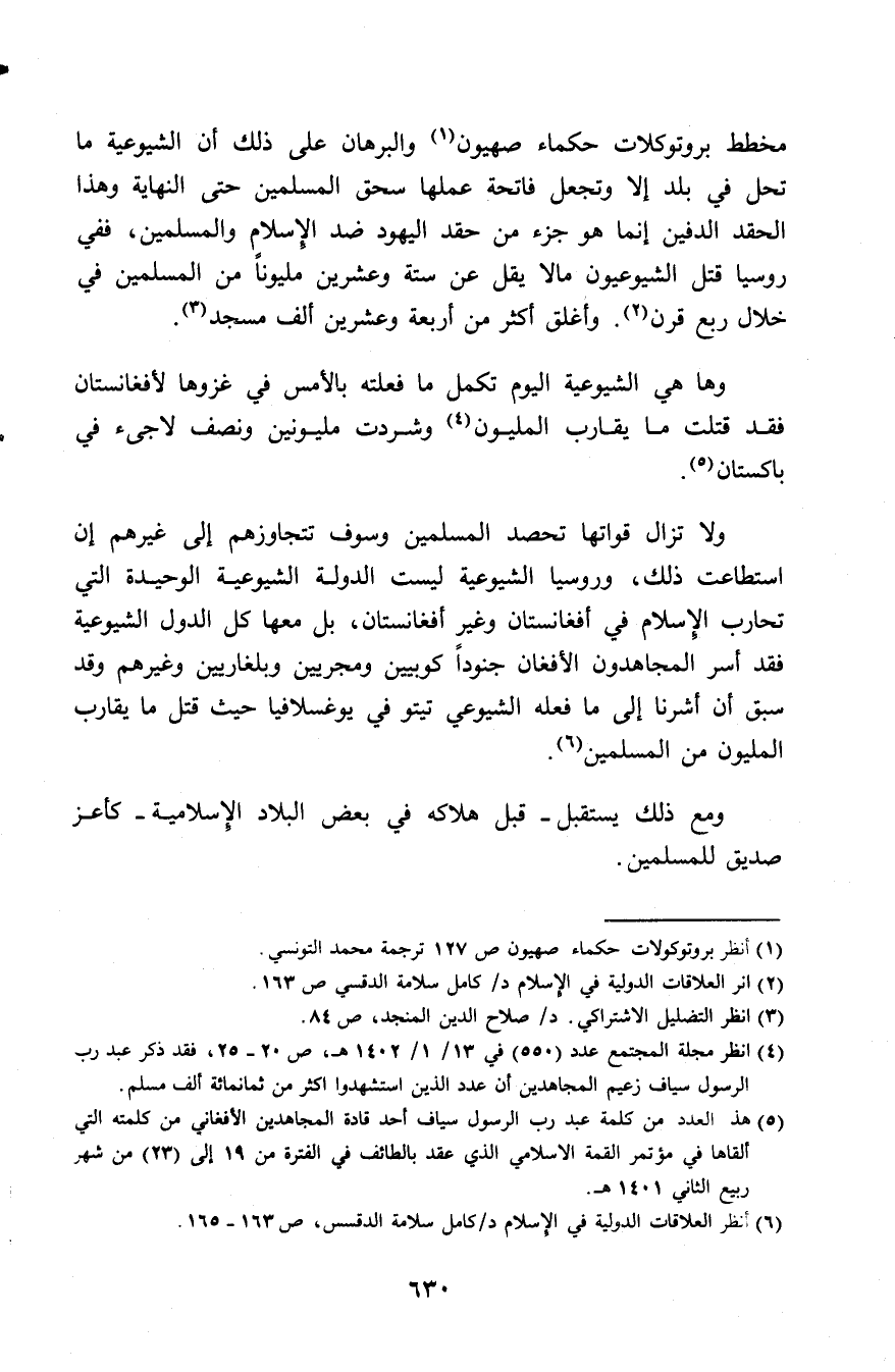 (¬5) هذا العدد من كلمة عبد رب الرسول سياف أحد قادة المجاهدين الأفغاني من كلمته التي ألقاها في مؤتمر القمة الإسلامي الذي عقد بالطائف في الفترة من 19 إلى 23 من شهر ربيع الثاني 1401هـ.