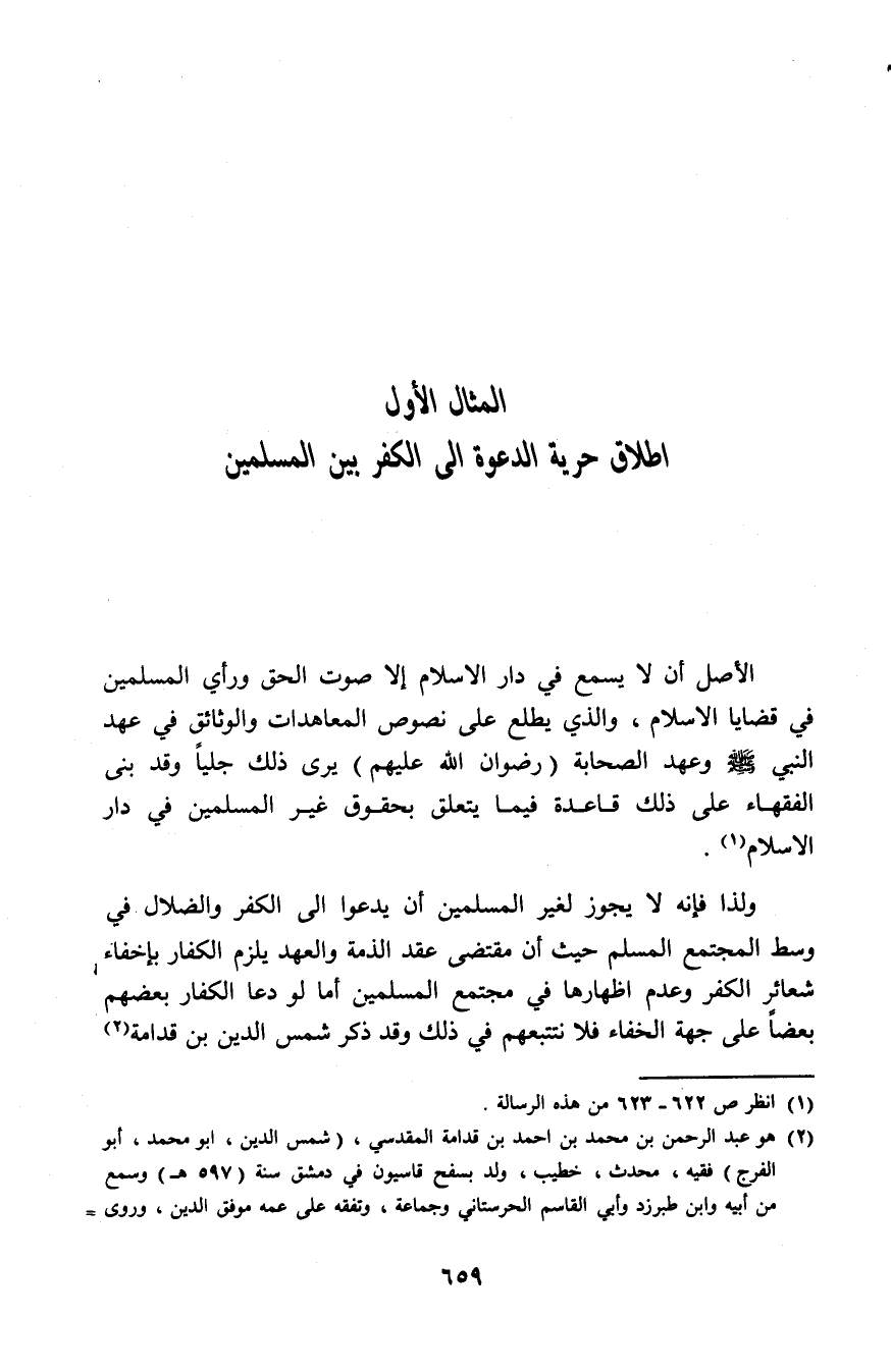 المثال الأول: إطلاق حرية الدعوة إلى الكفر بين المسلمين