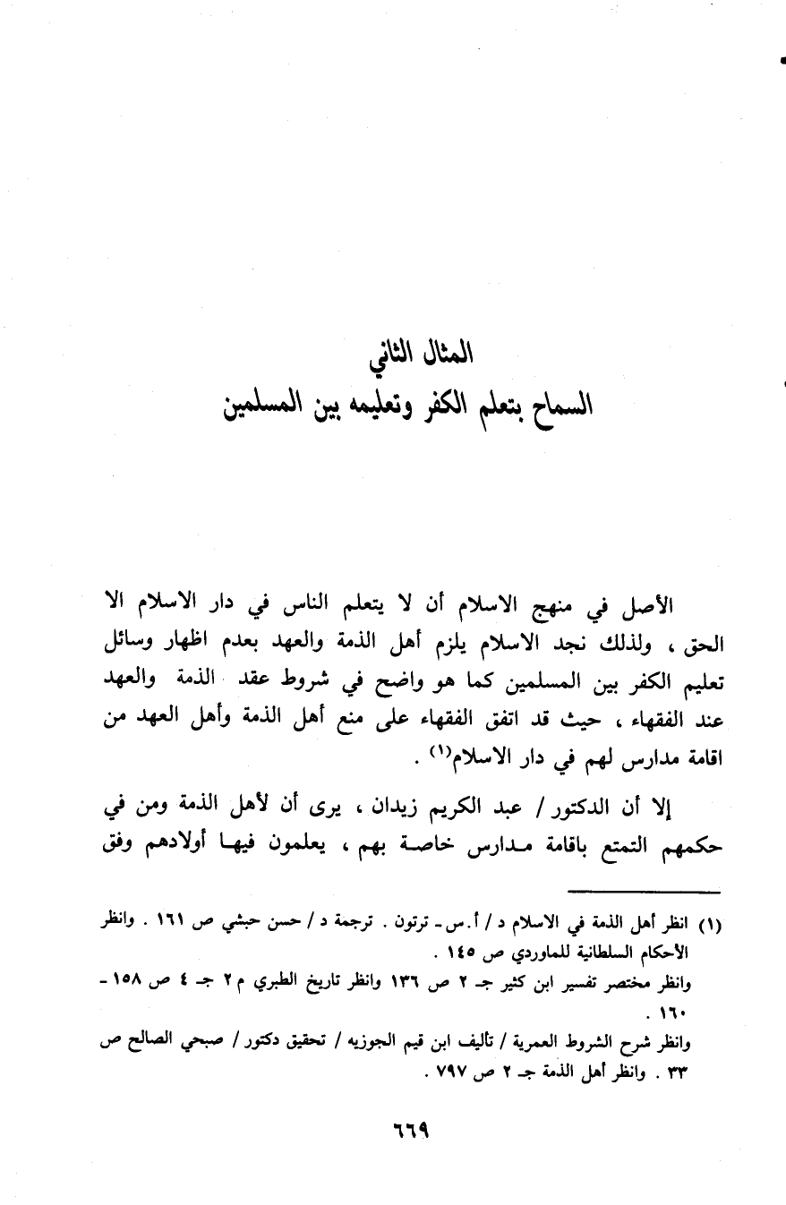 المثال الثاني: السماح بتعليم الكفر وتعليمه بين المسلمين