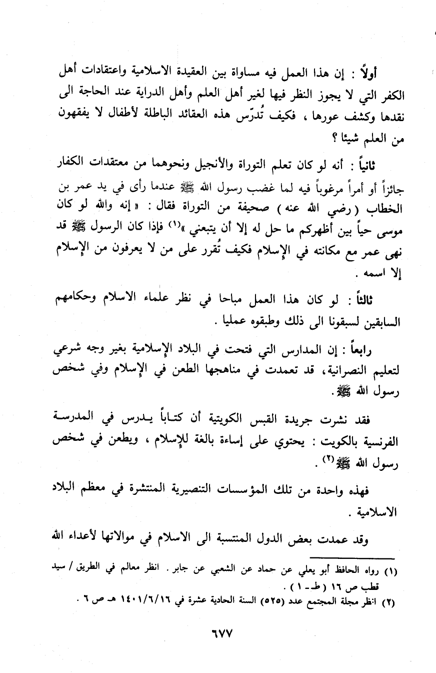 (¬2) انظر مجلة المجتمع عدد (525) السنة الحادية عشرة في 16/ 6/1401 هـ ص6.