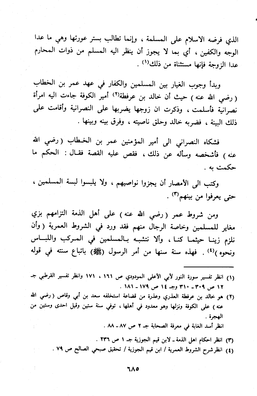 (¬4) انظر شرح الشروط العمرية/ ابن قيم الجوزية/ تحقيق صبحي الصالح ص79.