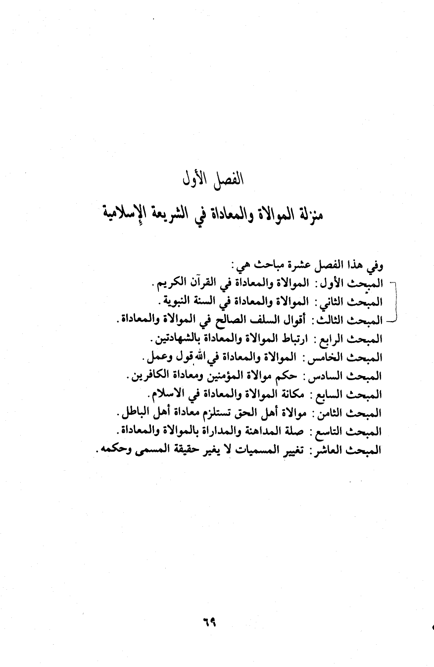 الفصل الأول: منزلة الموالاة والمعاداة في الشريعة الإسلامية