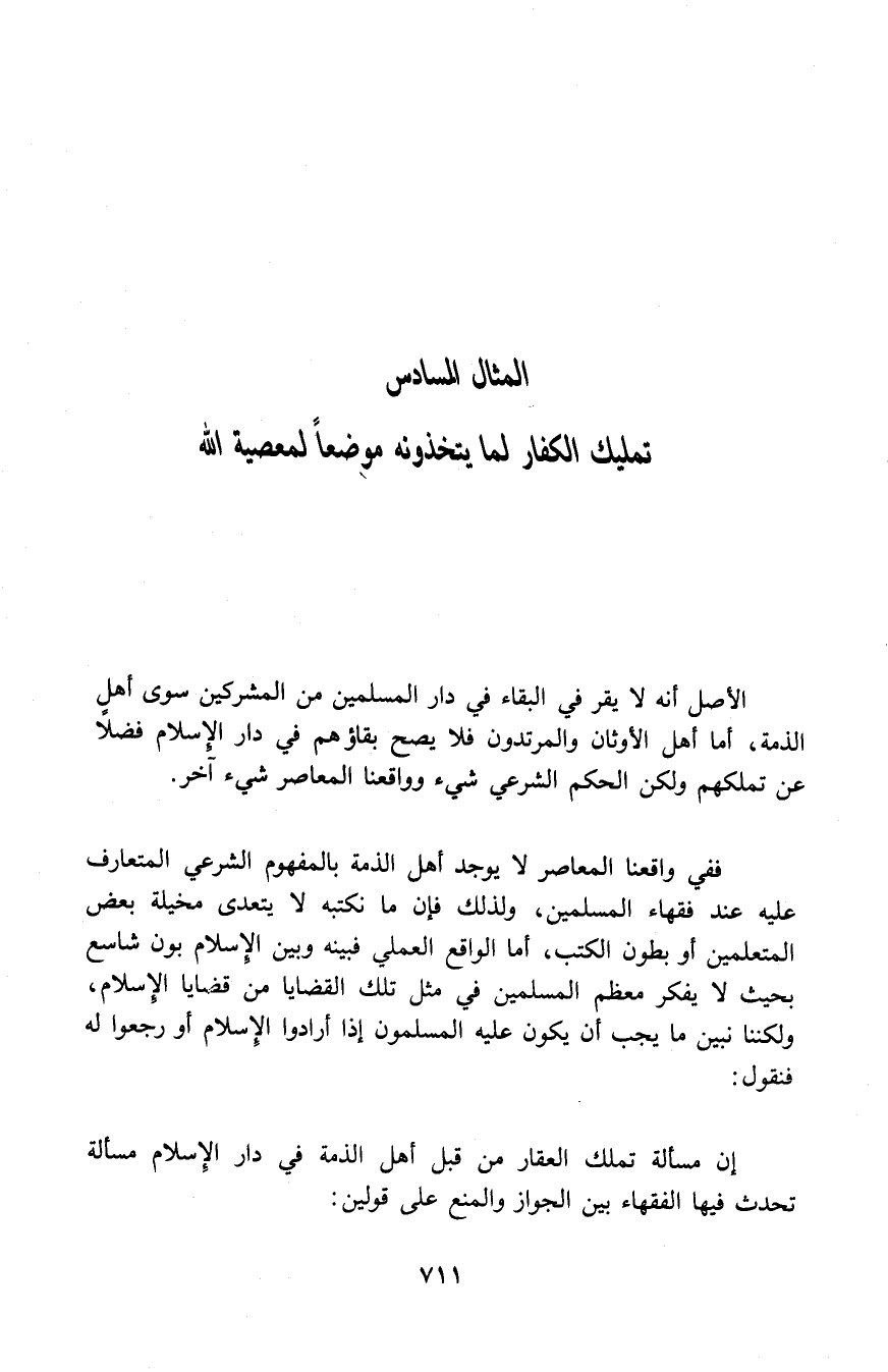 الأصل أنه لا يقر في البقاء في دار المسلمين من المشركين سوى أهل الذمة، أما أهل الأوثان والمرتدون فلا يصح بقاؤهم في دار الإسلام فضلاً عن تملكهم ولكن الحكم الشرعي شيء وواقعنا المعاصر شيء آخر.