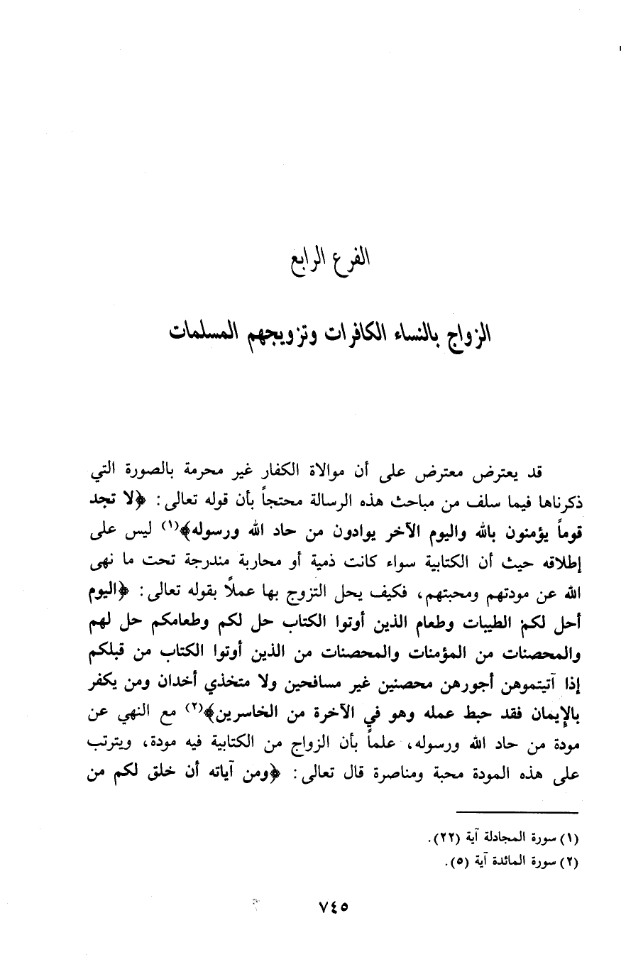 الفرع الرابع: الزواج بالنساء الكافرات وتزويجهم المسلمات