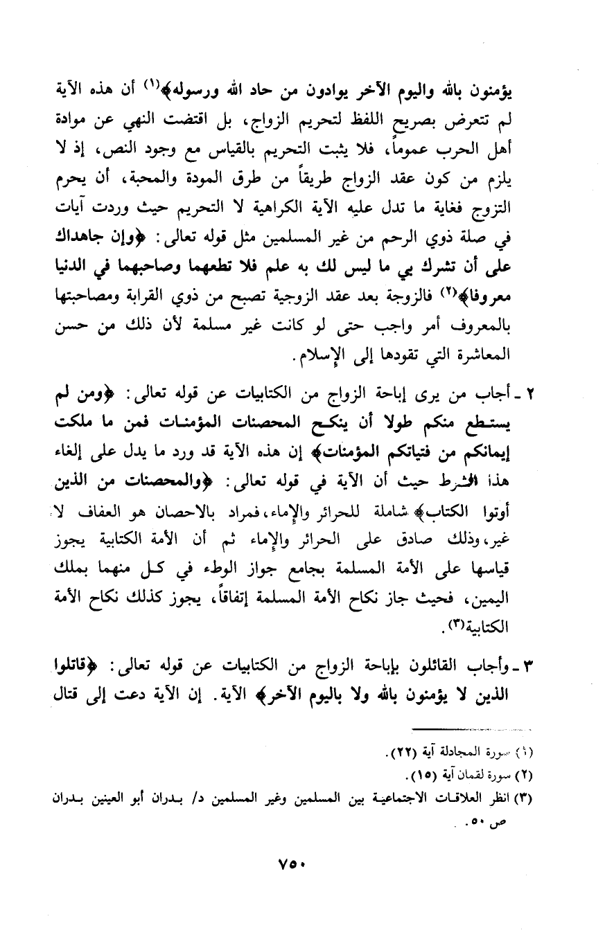 (¬3) انظر العلاقات الاجتماعية بين المسلمين وغير المسلمين د/ بدران أبو العينين بدران ص50.