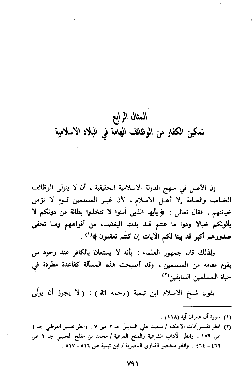 المثال الرابع: تمكين الكفار من الوظائف الهامة في البلاد الإسلامية