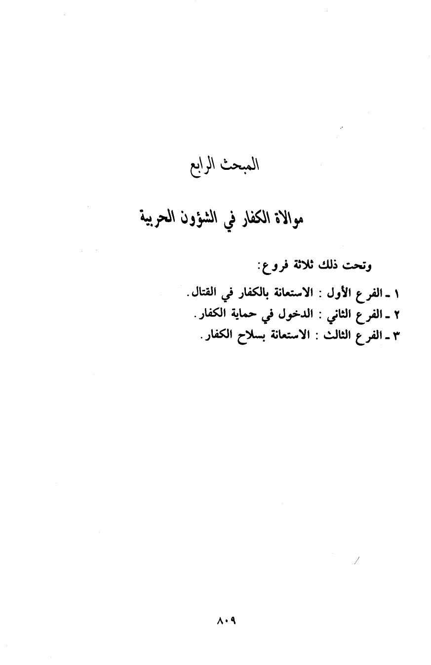 المبحث الرابع: موالاة الكفار في الشؤون الحربية